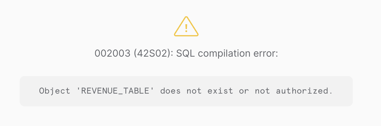 Inevitably, when we try to run this, we hit an error, because it made up the table name since we didn't provide it -